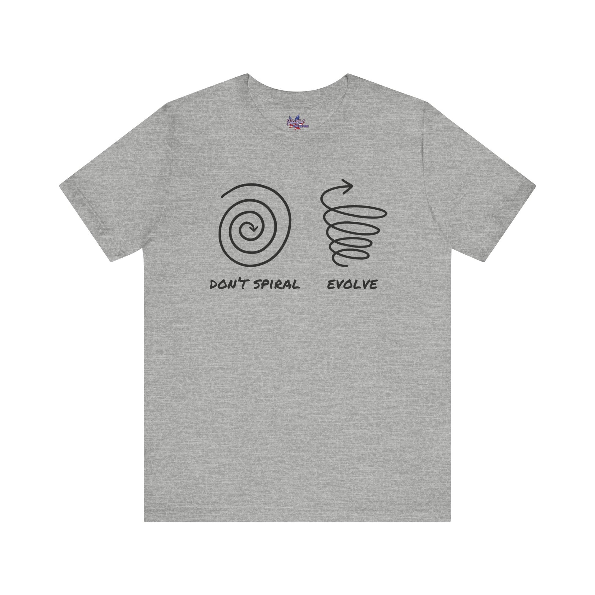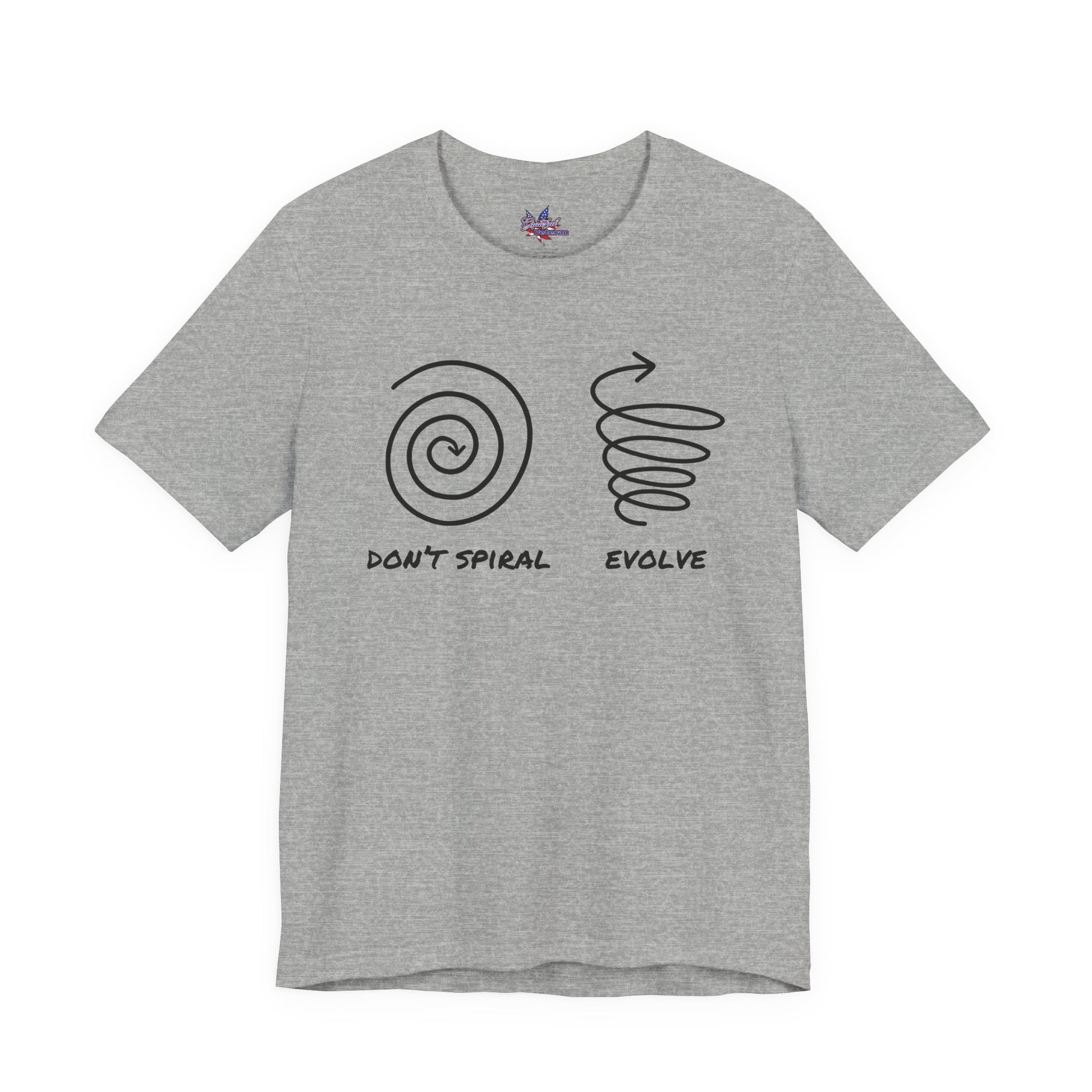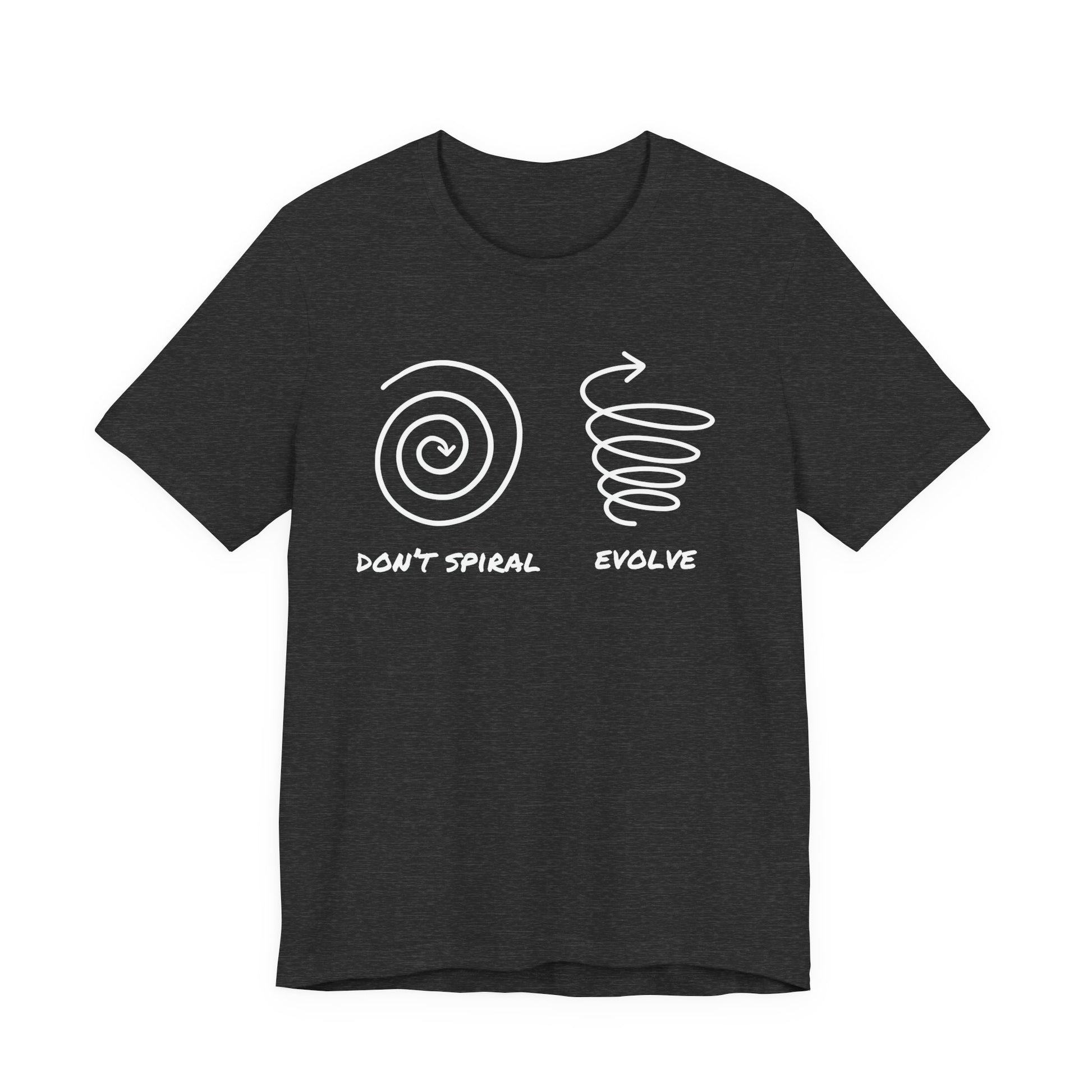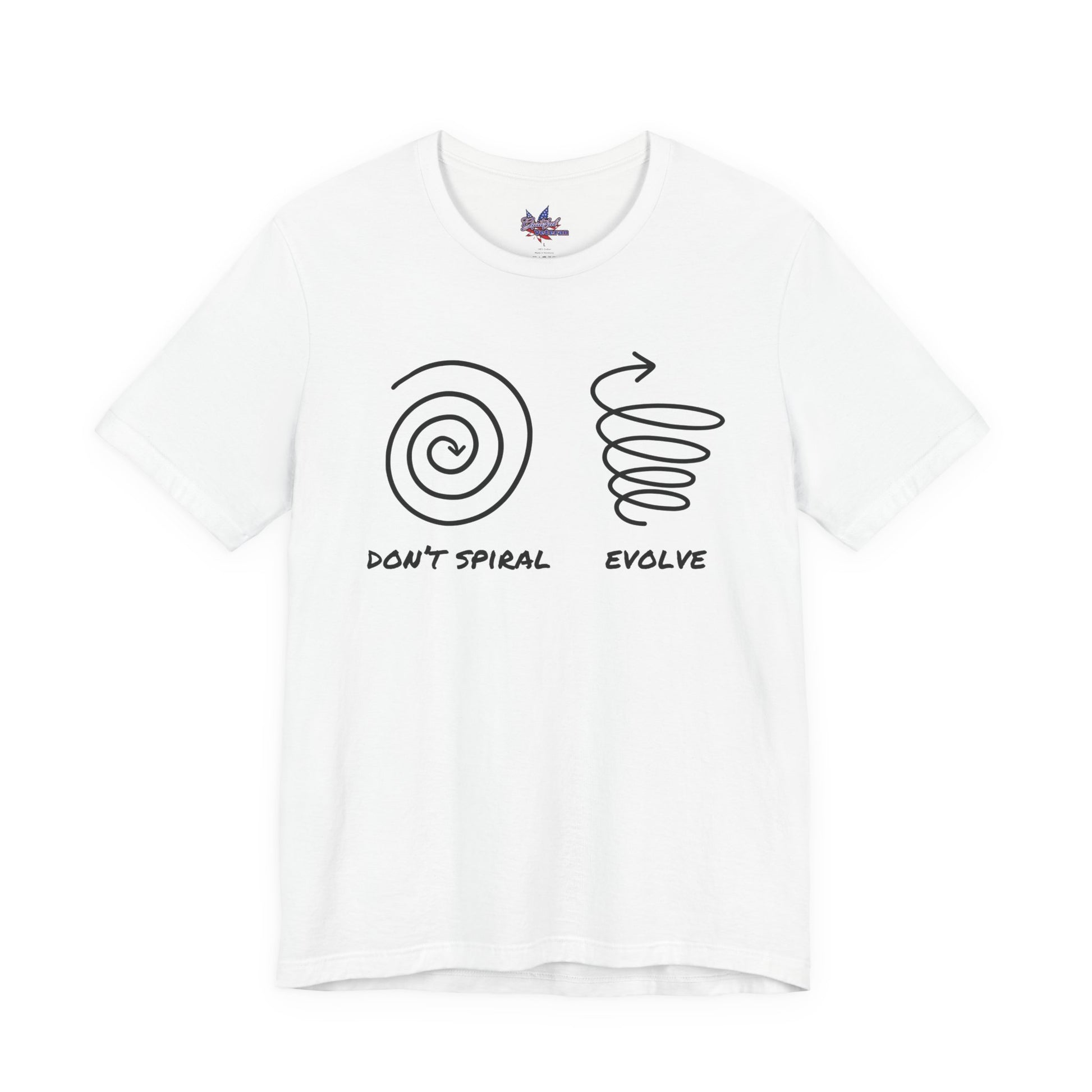This unique t-shirt is perfect for anyone who believes in growth and transformation. The intricate line art, paired with the quote “Don’t Spiral, Evolve,” adds a touch of sophistication, making it a versatile piece for any wardrobe.
