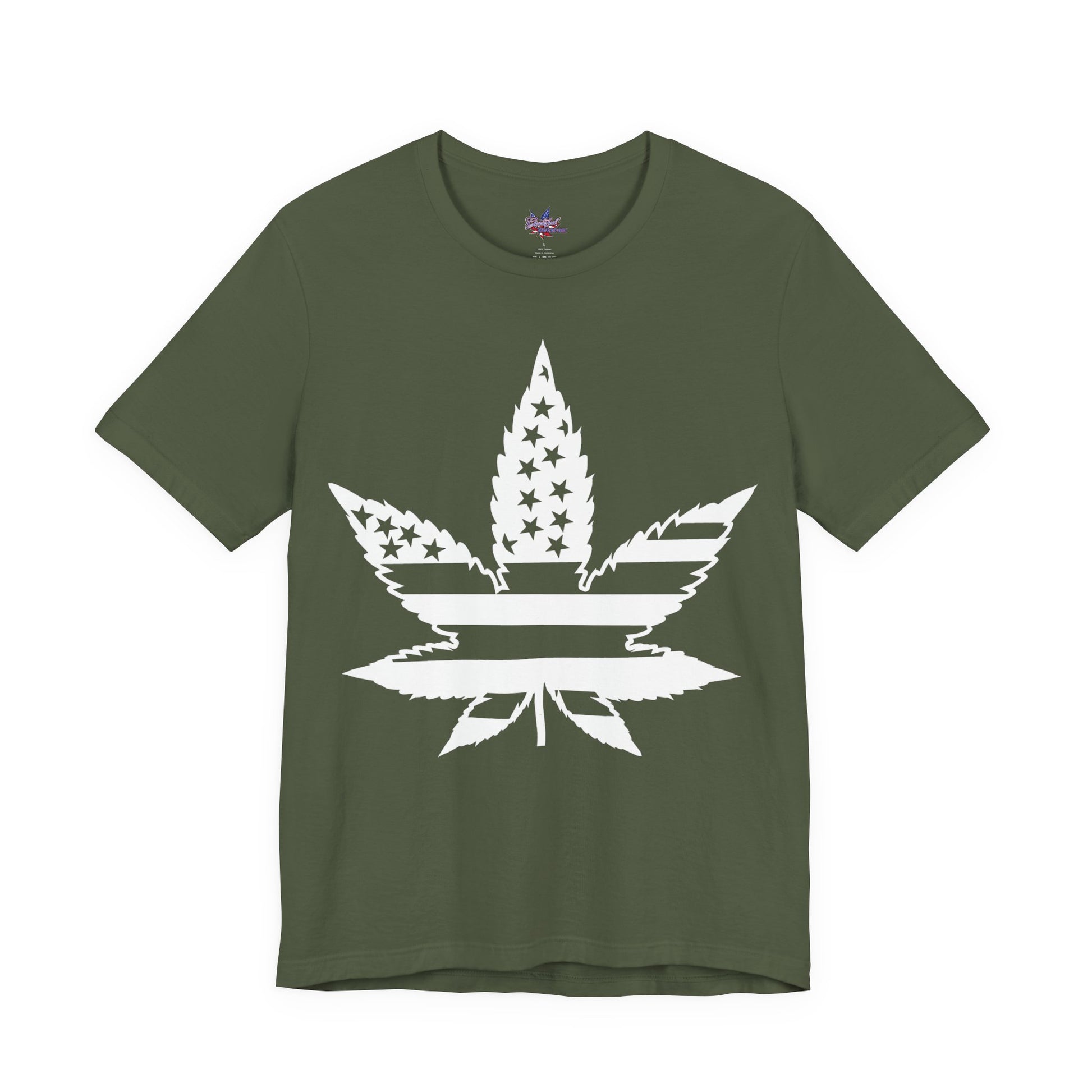 Wear your support on with our Grateful Veteran (Leaf) T-Shirt. This shirt proudly displays our distinctive logo, merging the American flag motif with cannabis leaves to symbolize both patriotism and the advocacy for therapeutic cannabis use. A perfect choice for veterans, advocates, and supporters who stand for freedom and healing.