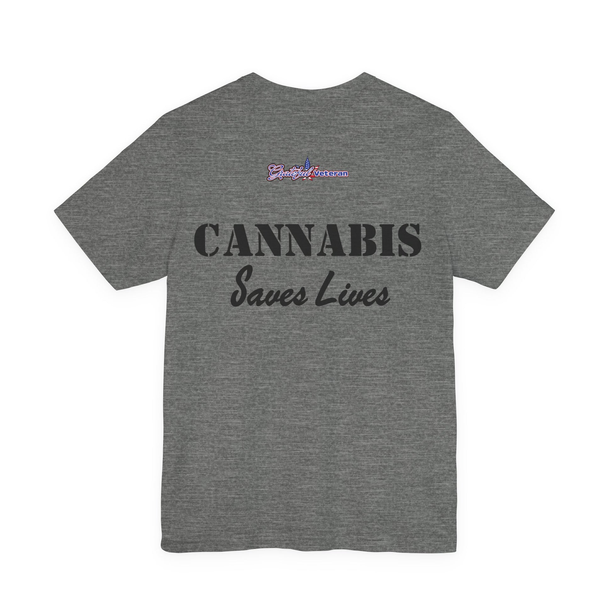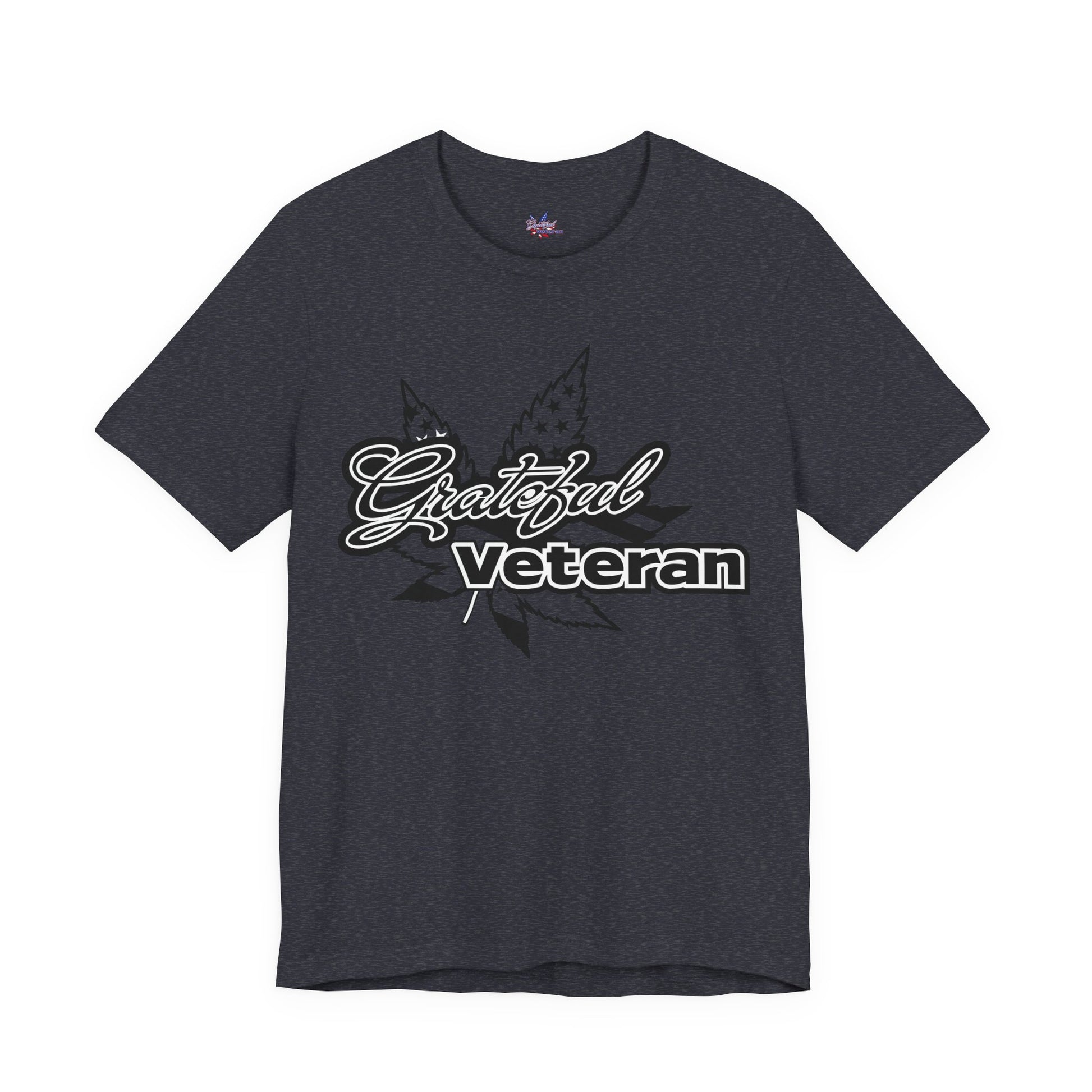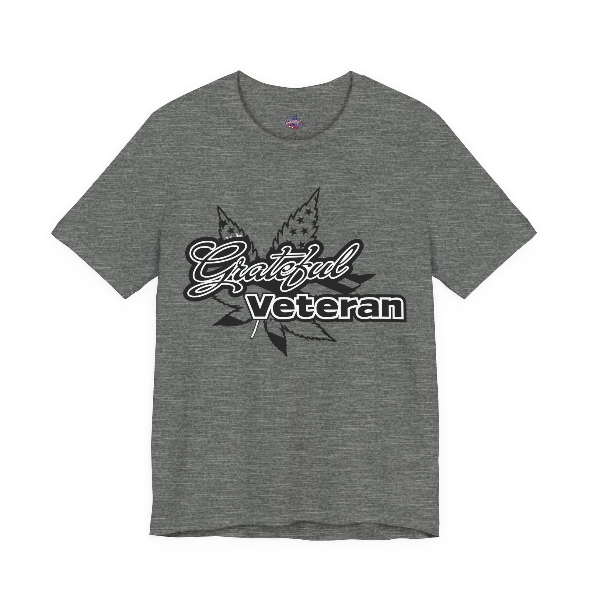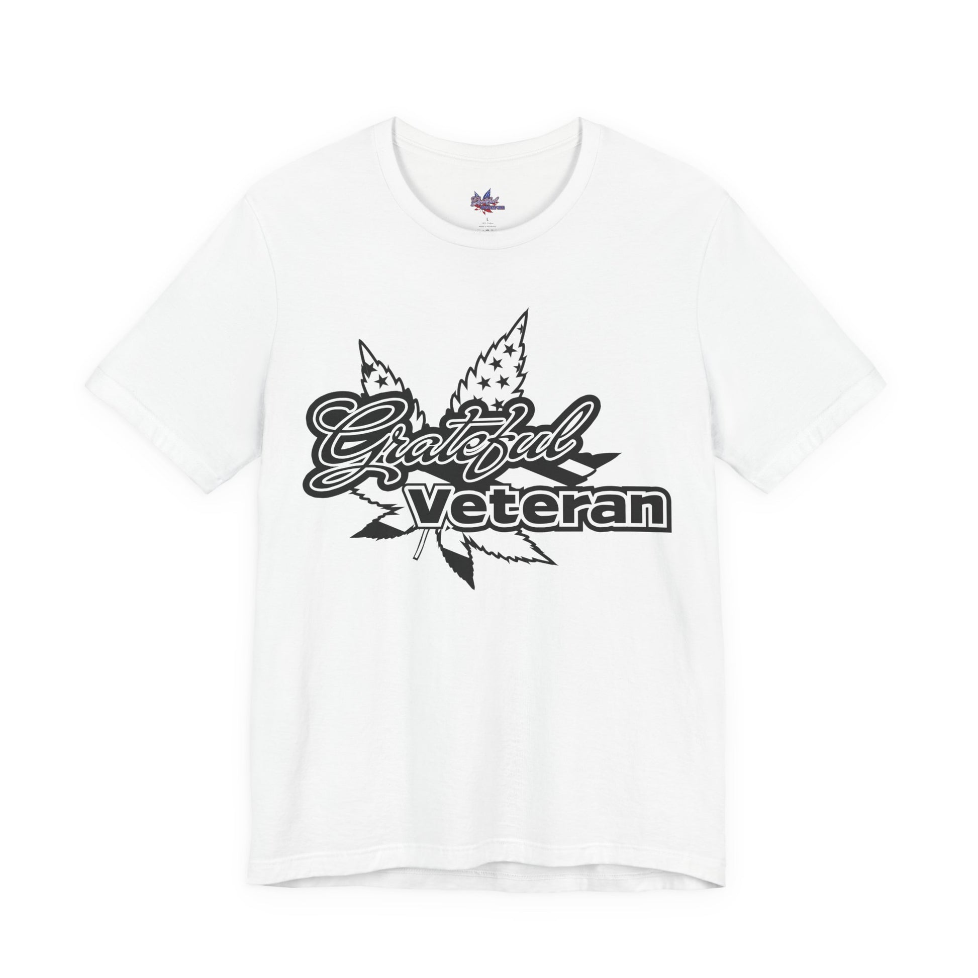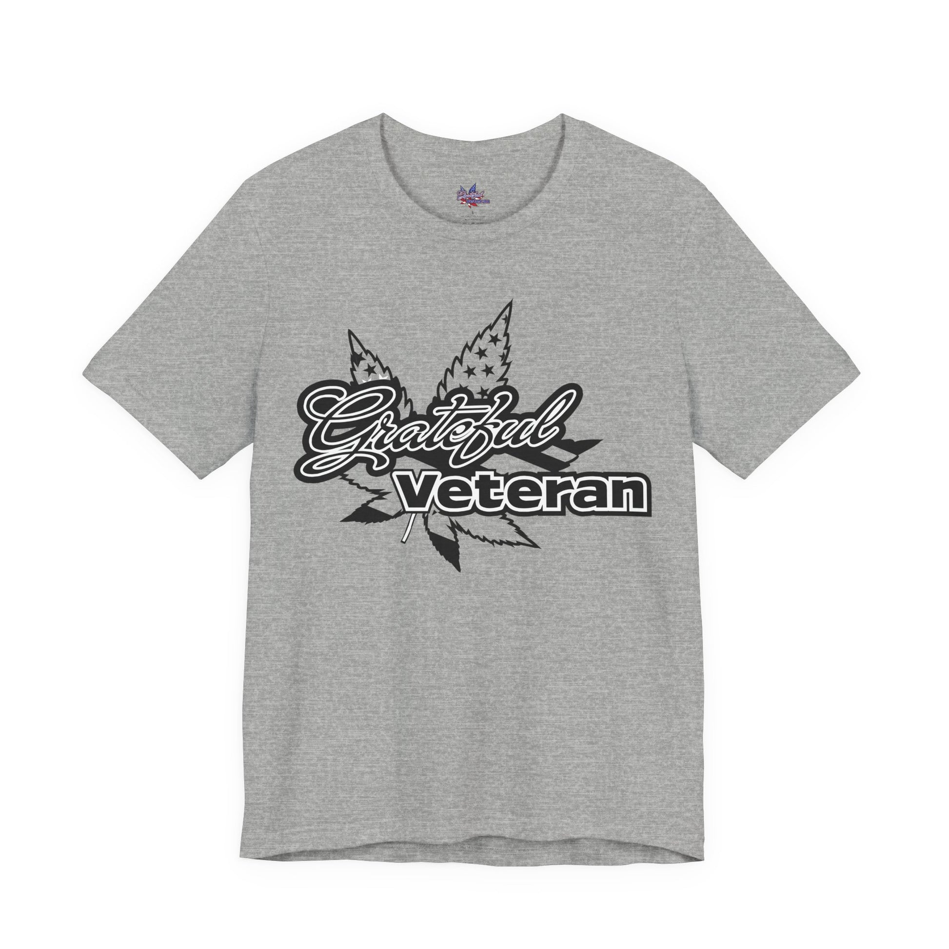 Wear your support on your sleeve with our Grateful Veteran Logo T-Shirt. This shirt proudly displays our distinctive logo, merging the American flag motif with cannabis leaves to symbolize both patriotism and the advocacy for therapeutic cannabis use. A perfect choice for veterans, advocates, and supporters who stand for freedom and healing.